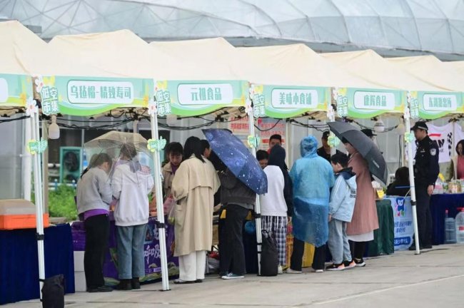 赛事期间,“未来π对”科技运动嘉年华吸引近千名市民沉浸式体验。运动舱、挑战舱、智慧舱三大主题舱构建“可学、可玩、可赛”的低空科普矩阵,早鸟票提前售罄,亲子家庭络绎不绝。低空市集汇聚青年主理人摊位、无人机文创、东湖农副产品、宋韵非遗手作等20余家摊位。游客手持青春集章卡,在趣味互动中深度体验农谷的春日浪漫。春耕希望・助农直播线上线下联动,实现“流量变销量”的希望转化。下午,花田音乐会为赛事注入浪漫气息。赛事带动周边消费显著提升,真正实现了“以赛促消、以节促产”。
